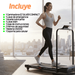La EZ Silver Compact es una caminadora eléctrica diseñada para caminar o trotar comodamente en casa, con poco espacio. Con su diseño ultra compacto, plegable y ligero, se guarda fácilmente bajo la cama o detrás de una puerta. Ideal para rutinas de bajo a mediano impacto, segura y muy fácil de usar. Equipada con pantalla digital, control remoto y hasta 6 km/h de velocidad, la EZ Silver Compact te permite mantenerte activo y monitorear tu progreso (tiempo, distancia, velocidad y calorías). Con ruedas incorporadas, se transporta sin esfuerzo y se ajusta a cualquier hogar.