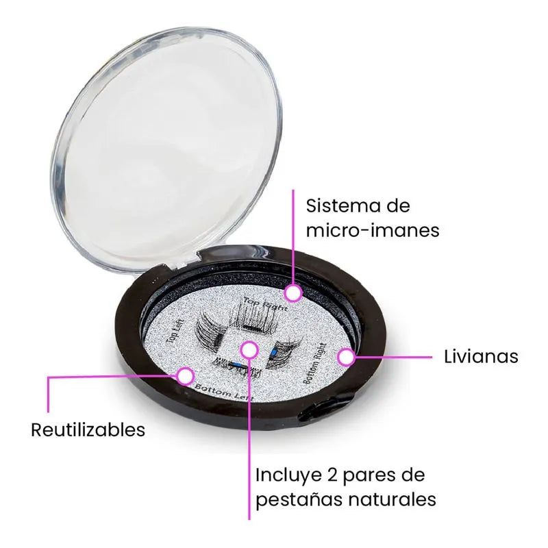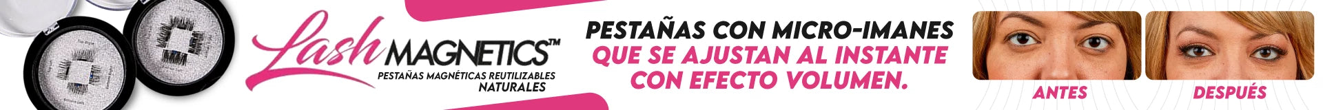 Lash Magnetics son las novedosas pestañas que se ajustan al instante usando micro – imanes. Ahora es muy fácil poder lucir unas pestañas largas, fijas y sexys, devolviéndole una apariencia radiante y resplandeciente a tus ojos. Lash Magnetics son las pestañas con efecto natural que podrás ponérte en tan solo un click. Es muy fácil, elige el kit de pestañas que deseas usar, identifica de acuerdo a las instrucciones cuál va en la parte superior de tus pestañas naturales, y luego adhiere en la parte inferior el otro juego de pestañas imantadas, y listo, lucirás esas pestañas largas y con volumen que siempre deseaste.