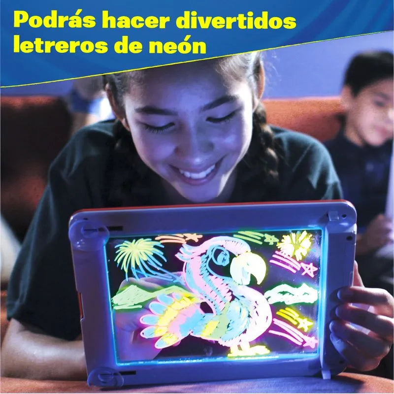 Magic Pad es un instrumento didáctico que te ayudará a aprender y practicar matemáticas o escritura sin necesidad de gastar papel, solo necesitas crear, borrar y volver a dibujar cuantas veces quieras. Su pantalla transparente viene con luces led para reflejar 8 colores vibrantes que te brindarán horas de diversión. La pantalla transparente te permite colocar detrás cualquiera de las 30 plantillas que vienen incluidas, para calcar, dibujar y colorear las imágenes que quieras. • Podrá iluminar la habitación durante la noche como una lámpara, usarla como pizarra para dejar notas o simplemente para crear, dibujar y hacer volar la imaginación.