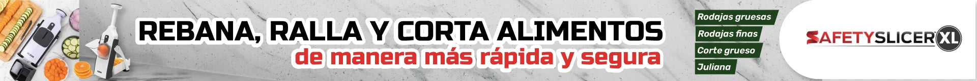 Es un excelente ayudante de cocina multifuncional de uso manual, que te permite rebanar, rallar y cortar alimentos en porciones más grandes que lo usual, sin mayor esfuerzo, y de manera rápida y eficiente. • Podrás rebanar, rallar y cortar de manera práctica y segura tus alimentos como frutas y verduras en poco tiempo. • Tendrás diferentes funciones de corte como rebanadas y julianas, permitiendo así cocinar de manera creativa. • Podrás ajustar el grosor del rebanado, permitiendo así preparar diferentes recetas a tu gusto. • Ya no tendrás que estar en la cocina afilando cuchillos para cortar o picar tus alimentos. • Se usa de manera manual y con el menor esfuerzo, solo presiona el mango de arriba hacia abajo y tus cortes estarán listos. • Libre de BPA (Bisfenol A) y silicona, lo que hace que sea una preparación más saludable. • Es apto para el lava vajillas. • Cuenta con una base de succión antideslizante para generar estabilidad a la hora de su uso para que no se mueva. • Cuenta con un práctico contenedor que recoge los alimentos que procese, evitando así desorden en su cocina. • Es compacta y fácil de usar.