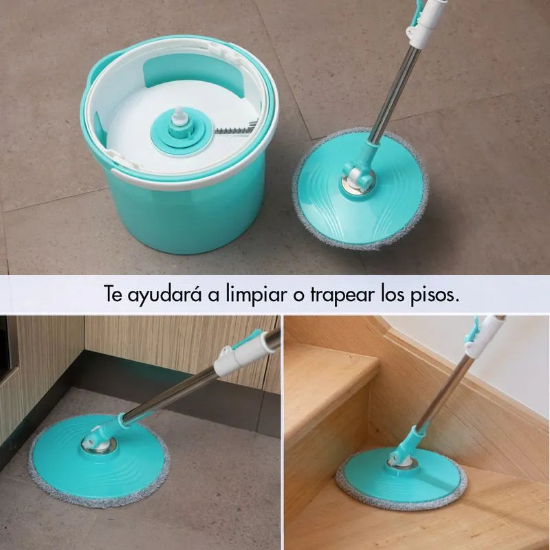 Es un sistema completo de limpieza que usa la tecnología de centrifugado el cual te permitirá limpiar, trapear y secar los pisos de una manera más fácil e higiénica gracias a sus dos cubetas incorporadas, una para el agua limpia y otra que almacena el agua sucia. Podrás escurrir el trapeador en la cubeta sin necesidad de que tus manos entren en contacto con el agua sucia, y gracias a su cabezal que gira 360 grados podrás alcanzar los rincones y las zonas más difíciles. Ahora podrás limpiar sin ningún tipo de dificultad escaleras, debajo de los muebles y sobre diferentes superficies.